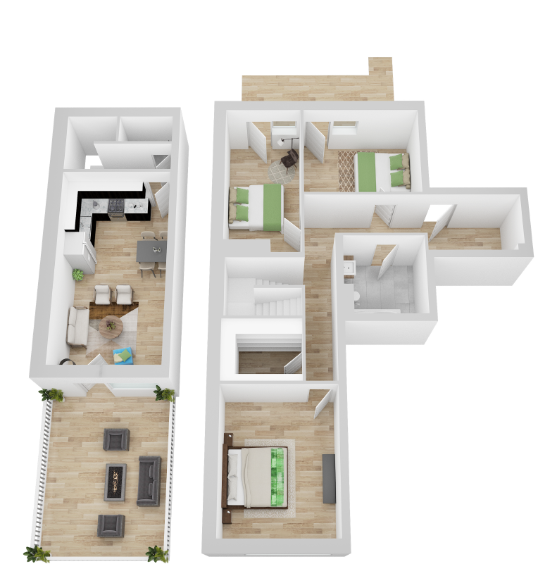 - großzügige, helle Räume, auch als Maisonette-Wohnungen mit Ost-und West-Ausrichtung